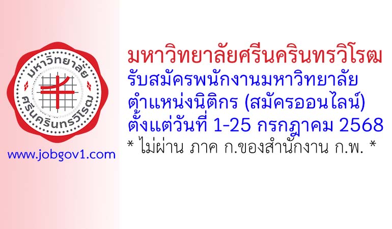 มหาวิทยาลัยศรีนครินทรวิโรฒ รับสมัครพนักงานมหาวิทยาลัย ตำแหน่งนิติกร ตั้งแต่วันที่ 1-25 กรกฎาคม 2568