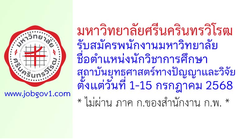 มหาวิทยาลัยศรีนครินทรวิโรฒ รับสมัครพนักงานมหาวิทยาลัย ตำแหน่งนักวิชาการศึกษา สถาบันยุทธศาสตร์ทางปัญญาและวิจัย ตั้งแต่วันที่ 1-15 กรกฎาคม 2568
