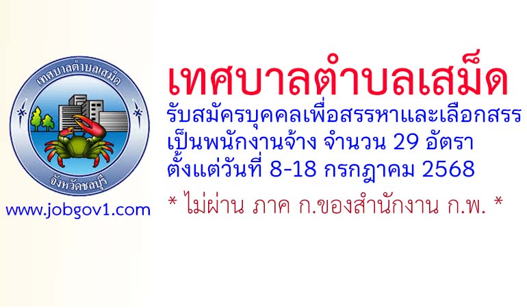 เทศบาลตำบลเสม็ด รับสมัครบุคคลเพื่อสรรหาและเลือกสรรเป็นพนักงานจ้าง 29 อัตรา ตั้งแต่วันที่ 8-18 กรกฎาคม 2568