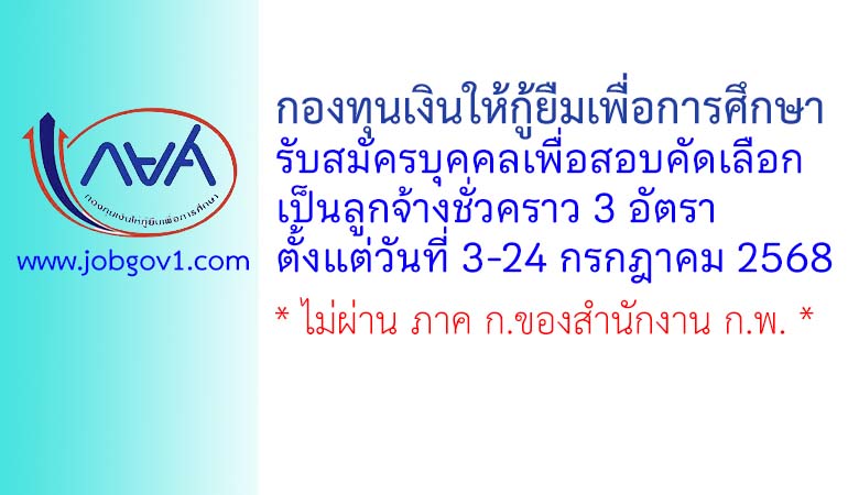 กองทุนเงินให้กู้ยืมเพื่อการศึกษา รับสมัครบุคคลเพื่อสอบคัดเลือกเป็นลูกจ้างชั่วคราว 3 อัตรา ตั้งแต่วันที่ 3-24 กรกฎาคม 2568