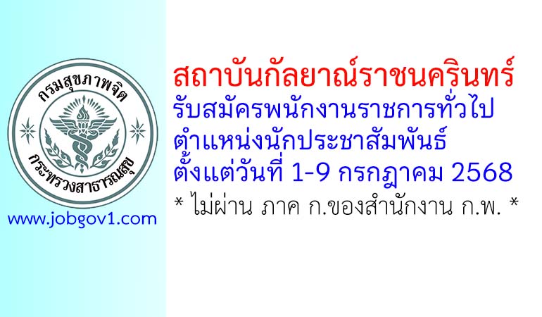 สถาบันกัลยาณ์ราชนครินทร์ รับสมัครพนักงานราชการทั่วไป ตำแหน่งนักประชาสัมพันธ์ ตั้งแต่วันที่ 1-9 กรกฎาคม 2568