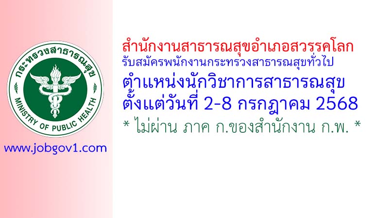 สำนักงานสาธารณสุขอำเภอสวรรคโลก รับสมัครพนักงานกระทรวงสาธารณสุขทั่วไป ตำแหน่งนักวิชาการสาธารณสุข ตั้งแต่วันที่ 2-8 กรกฎาคม 2568