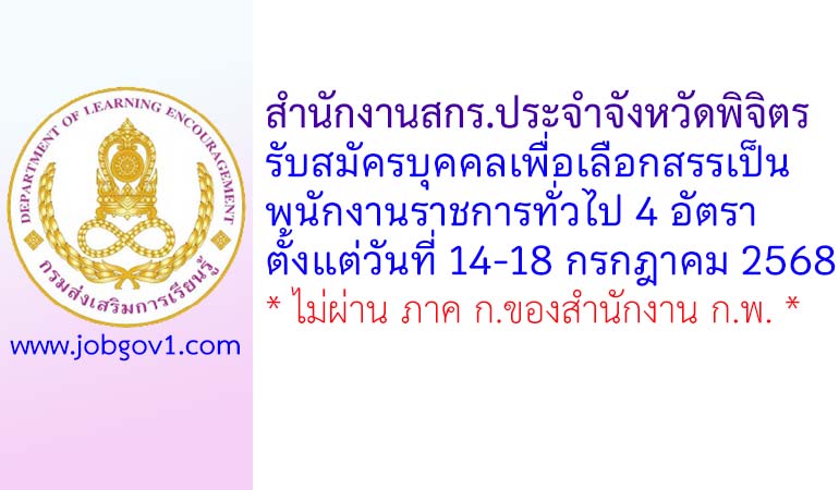 ประกาศสำนักงานส่งเสริมการเรียนรู้ประจำจังหวัดพิจิตร เรื่อง รับสมัครบุคคลเพื่อเลือกสรรเป็นพนักงานราชการทั่วไป