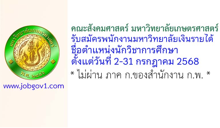 คณะสังคมศาสตร์ มหาวิทยาลัยเกษตรศาสตร์ รับสมัครพนักงานมหาวิทยาลัยเงินรายได้ ตำแหน่งนักวิชาการศึกษา ตั้งแต่วันที่ 2-31 กรกฎาคม 2568