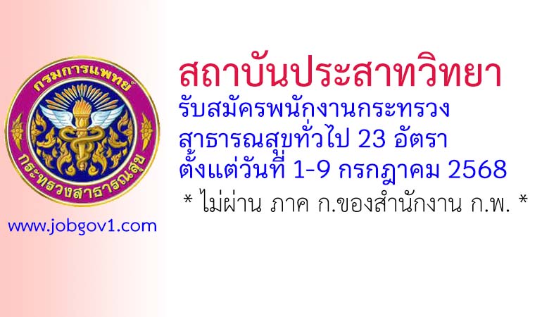 สถาบันประสาทวิทยา รับสมัครพนักงานกระทรวงสาธารณสุขทั่วไป 23 อัตรา ตั้งแต่วันที่ 1-9 กรกฎาคม 2568