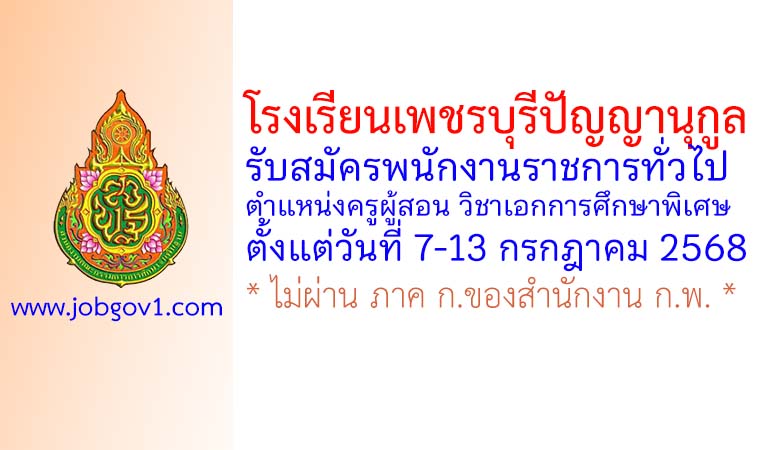 โรงเรียนเพชรบุรีปัญญานุกูล รับสมัครพนักงานราชการทั่วไป ตำแหน่งครูผู้สอน วิชาเอกการศึกษาพิเศษ ตั้งแต่วันที่ 7-13 กรกฎาคม 2568