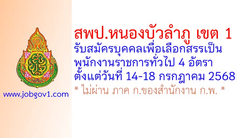 สพป.หนองบัวลำภู เขต 1 รับสมัครบุคคลเพื่อเลือกสรรเป็นพนักงานราชการทั่วไป 4 อัตรา ตั้งแต่วันที่ 14-18 กรกฎาคม 2568