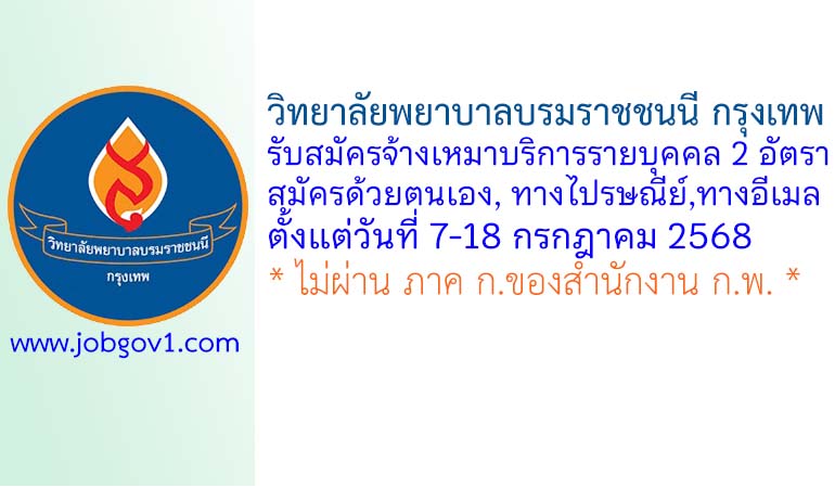 วิทยาลัยพยาบาลบรมราชชนนี กรุงเทพ รับสมัครจ้างเหมาบริการรายบุคคล 2 อัตรา ตั้งแต่วันที่ 7-18 กรกฎาคม 2568
