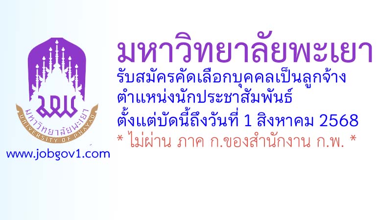 มหาวิทยาลัยพะเยา รับสมัครคัดเลือกบุคคลเป็นลูกจ้าง ตำแหน่งนักประชาสัมพันธ์ ตั้งแต่บัดนี้ถึงวันที่ 1 สิงหาคม 2568