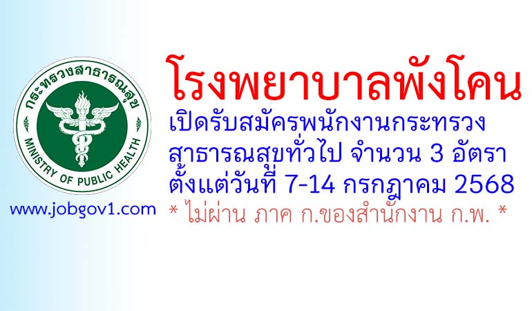โรงพยาบาลพังโคน รับสมัครพนักงานกระทรวงสาธารณสุขทั่วไป 3 อัตรา ตั้งแต่วันที่ 7-14 กรกฎาคม 2568
