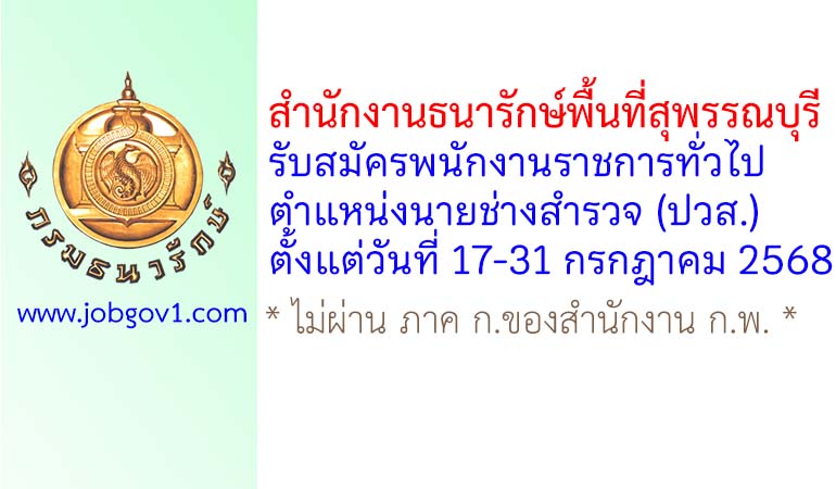 สำนักงานธนารักษ์พื้นที่สุพรรณบุรี รับสมัครพนักงานราชการทั่วไป ตำแหน่งนายช่างสำรวจ (ปวส.) ตั้งแต่วันที่ 17-31 กรกฎาคม 2568