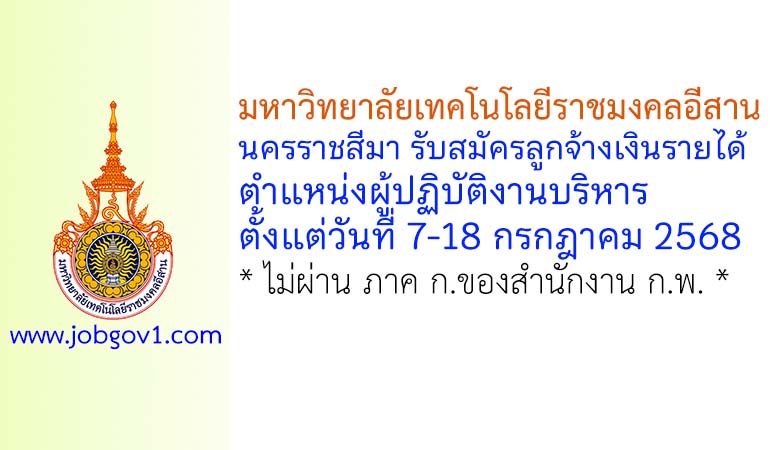 มหาวิทยาลัยเทคโนโลยีราชมงคลอีสาน นครราชสีมา รับสมัครลูกจ้างเงินรายได้ ตำแหน่งผู้ปฏิบัติงานบริหาร ตั้งแต่วันที่ 7-18 กรกฎาคม 2568