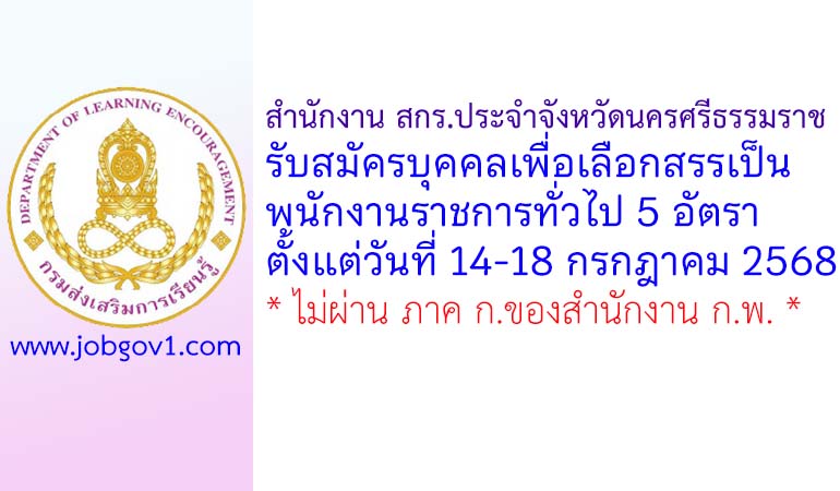 ประกาศสำนักงานส่งเสริมการเรียนรู้ประจำจังหวัดนครศรีธรรมราช เรื่อง รับสมัครบุคคลเพื่อสรรหาและเลือกสรรเป็นพนักงานราชการทั่วไป