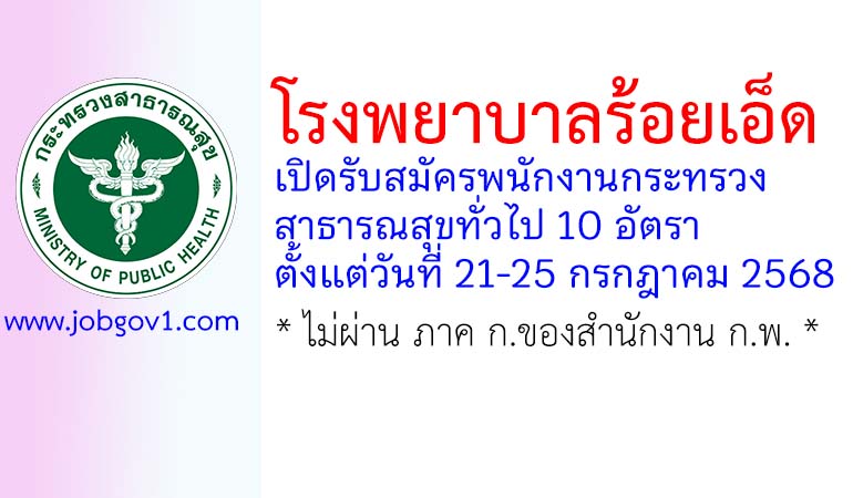 โรงพยาบาลร้อยเอ็ด รับสมัครพนักงานกระทรวงสาธารณสุขทั่วไป 10 อัตรา ตั้งแต่วันที่ 21-25 กรกฎาคม 2568