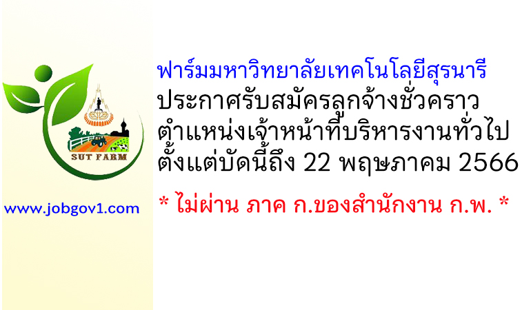 ฟาร์มมหาวิทยาลัยเทคโนโลยีสุรนารี รับสมัครลูกจ้างชั่วคราว ตำแหน่งเจ้าหน้าที่บริหารงานทั่วไป ตั้งแต่บัดนี้ถึง 22 พฤษภาคม 2566