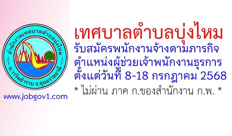 เทศบาลตำบลบุ่งไหม รับสมัครพนักงานจ้างตามภารกิจ ตำแหน่งผู้ช่วยเจ้าพนักงานธุรการ ตั้งแต่วันที่ 8-18 กรกฎาคม 2568