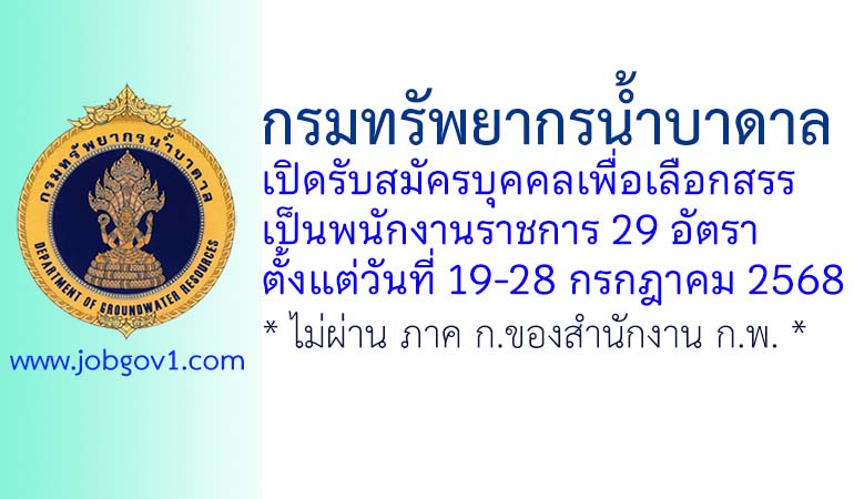 กรมทรัพยากรน้ำบาดาล รับสมัครบุคคลเพื่อเลือกสรรเป็นพนักงานราชการ 29 อัตรา ตั้งแต่วันที่ 19-28 กรกฎาคม 2568