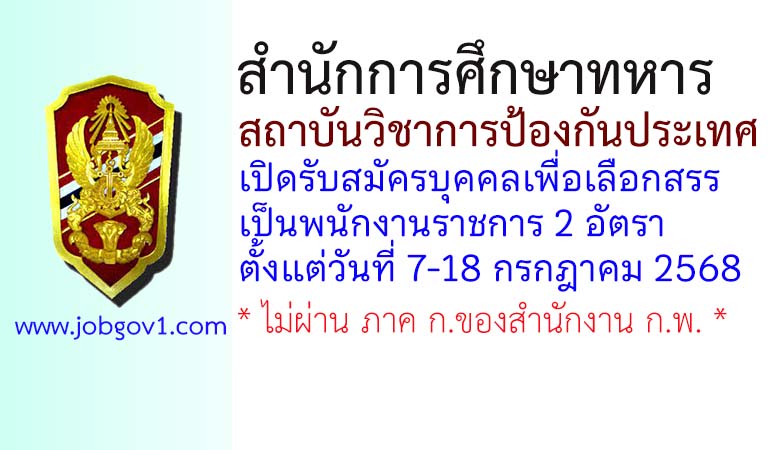 สำนักการศึกษาทหาร สถาบันวิชาการป้องกันประเทศ รับสมัครพนักงานราชการ 2 อัตรา ตั้งแต่วันที่ 7-18 กรกฎาคม 2568
