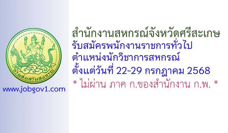 ประกาศจังหวัดศรีสะเกษ เรื่อง รับสมัครบุคคลเพื่อเลือกสรรเป็นพนักงานราชการทั่วไป ตำแหน่ง นักวิชาการสหกรณ์