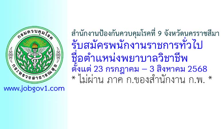 สำนักงานป้องกันควบคุมโรคที่ 9 จังหวัดนครราชสีมา รับสมัครพนักงานราชการทั่วไป ตำแหน่งพยาบาลวิชาชีพ ตั้งแต่ 23 กรกฎาคม – 3 สิงหาคม 2568