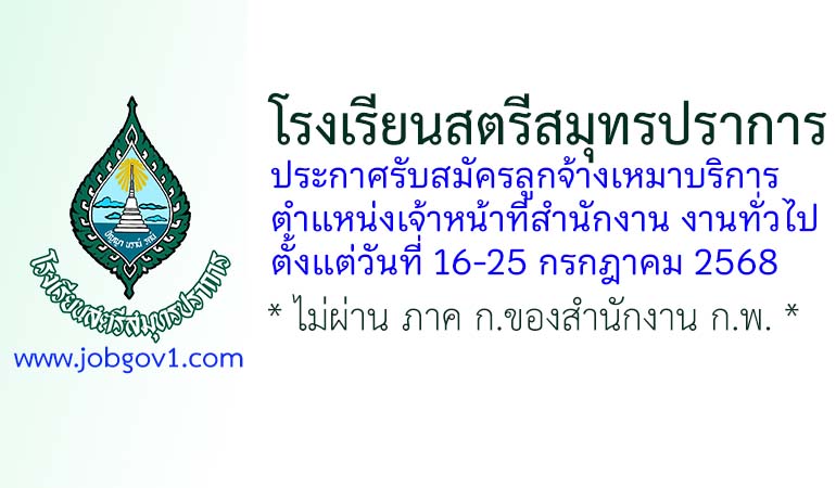 โรงเรียนสตรีสมุทรปราการ รับสมัครลูกจ้างเหมาบริการ ตำแหน่งเจ้าหน้าที่สำนักงาน งานทั่วไป ตั้งแต่วันที่ 16-25 กรกฎาคม 2568