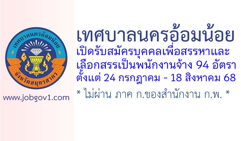 เทศบาลนครอ้อมน้อย รับสมัครบุคคลเพื่อสรรหาและเลือกสรรเป็นพนักงานจ้าง 94 อัตรา ตั้งแต่ 24 กรกฎาคม – 18 สิงหาคม 2568