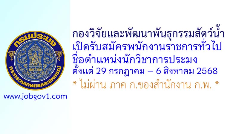 กองวิจัยและพัฒนาพันธุกรรมสัตว์น้ำ รับสมัครพนักงานราชการทั่วไป ตำแหน่งนักวิชาการประมง ตั้งแต่ 29 กรกฎาคม – 6 สิงหาคม 2568