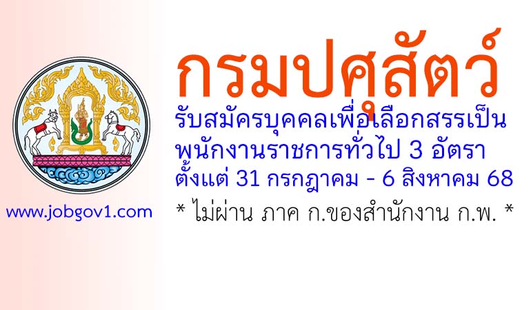 กรมปศุสัตว์ รับสมัครบุคคลเพื่อเลือกสรรเป็นพนักงานราชการทั่วไป 3 อัตรา ตั้งแต่ 31 กรกฎาคม – 6 สิงหาคม 2568