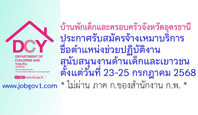 บ้านพักเด็กและครอบครัวจังหวัดอุดรธานี รับสมัครจ้างเหมาบริการ ตำแหน่งช่วยปฏิบัติงานสนับสนุนงานด้านเด็กและเยาวชน ตั้งแต่วันที่ 23-25 กรกฎาคม 2568