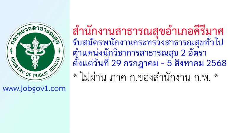 สำนักงานสาธารณสุขอำเภอคีรีมาศ รับสมัครพนักงานกระทรวงสาธารณสุขทั่วไป ตำแหน่งนักวิชาการสาธารณสุข 2 อัตรา ตั้งแต่ 29 กรกฎาคม – 5 สิงหาคม 2568
