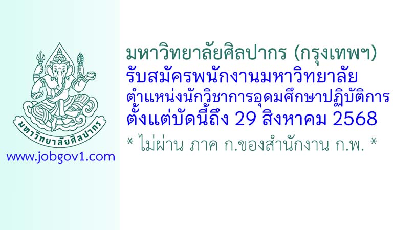 มหาวิทยาลัยศิลปากร (กรุงเทพฯ) รับสมัครพนักงานมหาวิทยาลัย ตำแหน่งนักวิชาการอุดมศึกษาปฏิบัติการ ตั้งแต่บัดนี้ถึง 29 สิงหาคม 2568