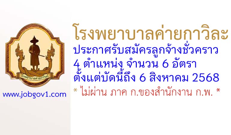 โรงพยาบาลค่ายกาวิละ รับสมัครลูกจ้างชั่วคราว 6 อัตรา ตั้งแต่บัดนี้ถึง 6 สิงหาคม 2568