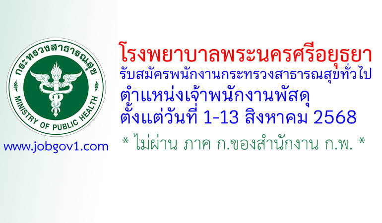 โรงพยาบาลพระนครศรีอยุธยา รับสมัครพนักงานกระทรวงสาธารณสุขทั่วไป ตำแหน่งเจ้าพนักงานพัสดุ ตั้งแต่วันที่ 1-13 สิงหาคม 2568