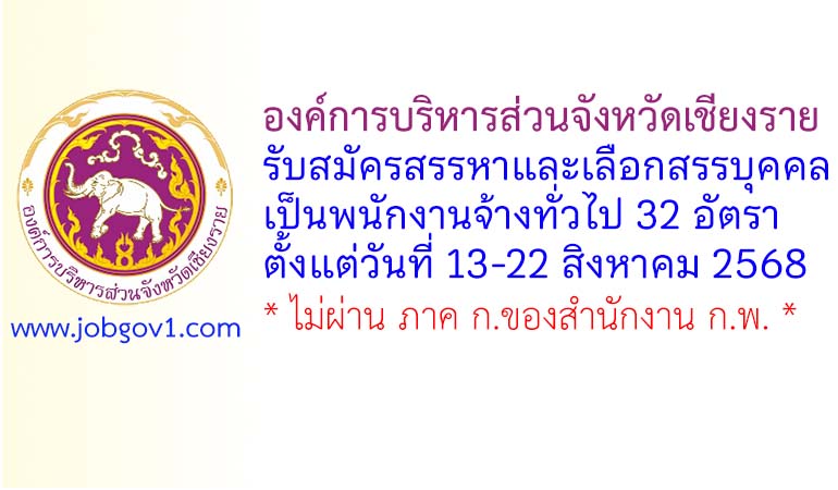 องค์การบริหารส่วนจังหวัดเชียงราย รับสมัครสรรหาและเลือกสรรบุคคลเป็นพนักงานจ้างทั่วไป 32 อัตรา ตั้งแต่วันที่ 13-22 สิงหาคม 2568