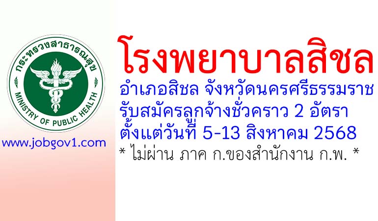 โรงพยาบาลสิชล รับสมัครลูกจ้างชั่วคราว 2 อัตรา ตั้งแต่วันที่ 5-13 สิงหาคม 2568