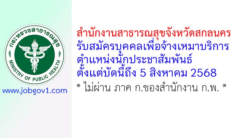 สำนักงานสาธารณสุขจังหวัดสกลนคร รับสมัครบุคคลเพื่อจ้างเหมาบริการ ตำแหน่งนักประชาสัมพันธ์ ตั้งแต่บัดนี้ถึง 5 สิงหาคม 2568