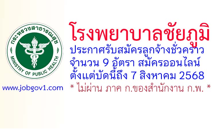 โรงพยาบาลชัยภูมิ รับสมัครลูกจ้างชั่วคราว 9 อัตรา ตั้งแต่บัดนี้ถึง 7 สิงหาคม 2568