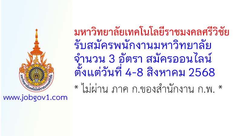มหาวิทยาลัยเทคโนโลยีราชมงคลศรีวิชัย รับสมัครพนักงานมหาวิทยาลัย 3 อัตรา ตั้งแต่วันที่ 4-8 สิงหาคม 2568