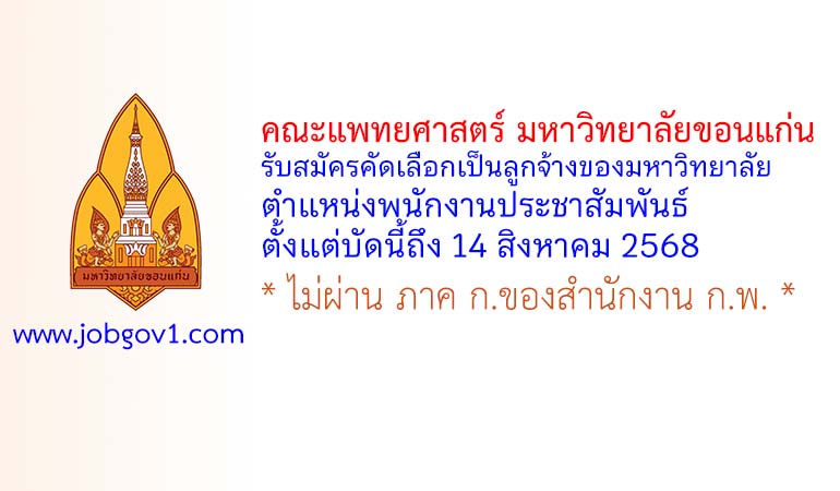 คณะแพทยศาสตร์ มหาวิทยาลัยขอนแก่น รับสมัครตำแหน่งพนักงานประชาสัมพันธ์ ตั้งแต่บัดนี้ถึง 14 สิงหาคม 2568