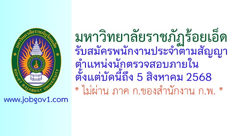 มหาวิทยาลัยราชภัฏร้อยเอ็ด รับสมัครพนักงานประจำตามสัญญา ตำแหน่งนักตรวจสอบภายใน ตั้งแต่บัดนี้ถึง 5 สิงหาคม 2568