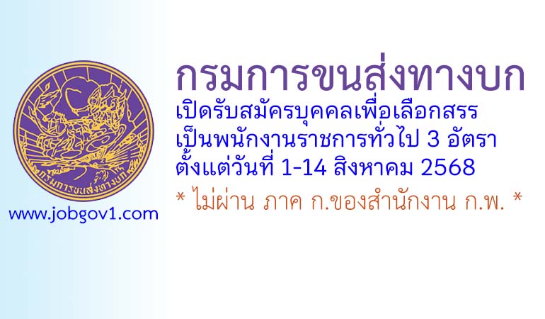 กรมการขนส่งทางบก รับสมัครบุคคลเพื่อเลือกสรรเป็นพนักงานราชการทั่วไป 3 อัตรา ตั้งแต่วันที่ 1-14 สิงหาคม 2568