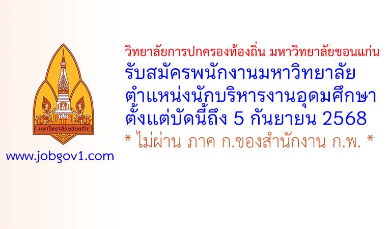 วิทยาลัยการปกครองท้องถิ่น มหาวิทยาลัยขอนแก่น รับสมัครพนักงานมหาวิทยาลัย ตำแหน่งนักบริหารงานอุดมศึกษา ตั้งแต่บัดนี้ถึง 5 กันยายน 2568