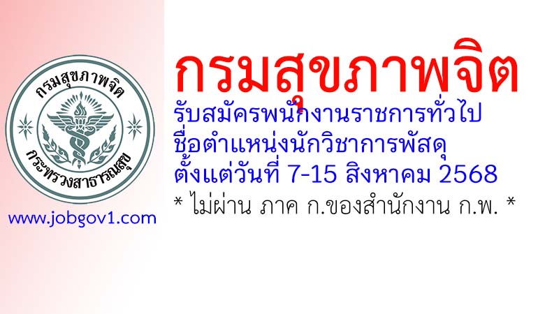 กรมสุขภาพจิต รับสมัครพนักงานราชการทั่วไป ตำแหน่งนักวิชาการพัสดุ ตั้งแต่วันที่ 7-15 สิงหาคม 2568