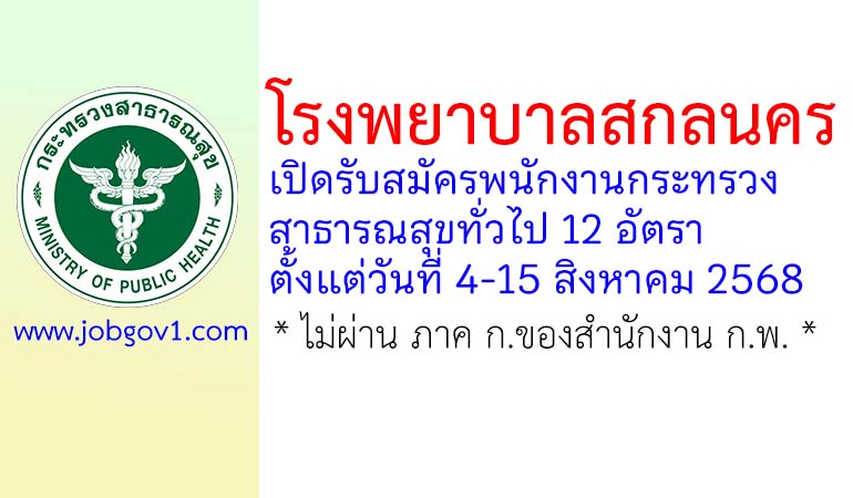 โรงพยาบาลสกลนคร รับสมัครพนักงานกระทรวงสาธารณสุขทั่วไป 12 อัตรา ตั้งแต่วันที่ 4-15 สิงหาคม 2568