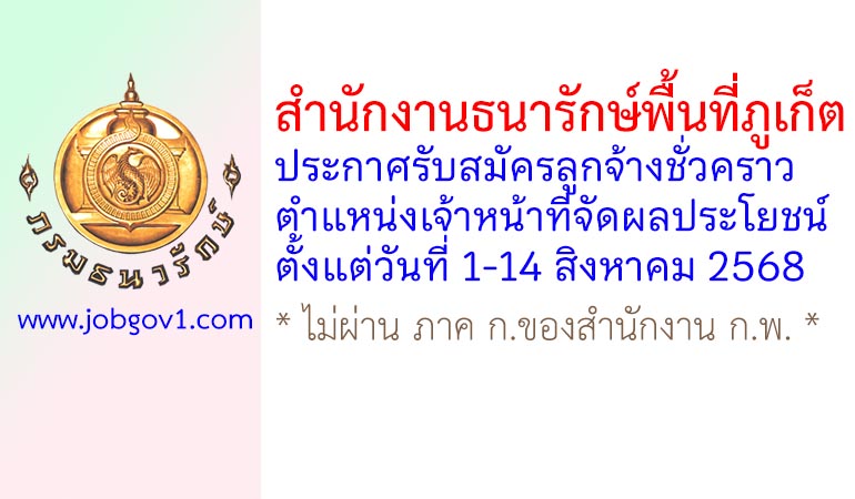 สำนักงานธนารักษ์พื้นที่ภูเก็ต รับสมัครลูกจ้างชั่วคราว ตำแหน่งเจ้าหน้าที่จัดผลประโยชน์ ตั้งแต่วันที่ 1-14 สิงหาคม 2568
