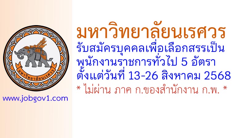 มหาวิทยาลัยนเรศวร รับสมัครบุคคลเพื่อเลือกสรรเป็นพนักงานราชการทั่วไป 5 อัตรา ตั้งแต่วันที่ 13-26 สิงหาคม 2568
