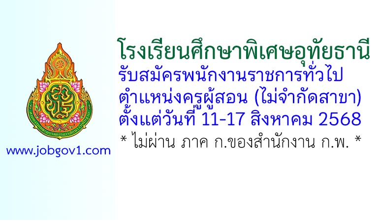 โรงเรียนศึกษาพิเศษอุทัยธานี รับสมัครพนักงานราชการทั่วไป ตำแหน่งครูผู้สอน (ไม่จำกัดสาขา) ตั้งแต่วันที่ 11-17 สิงหาคม 2568
