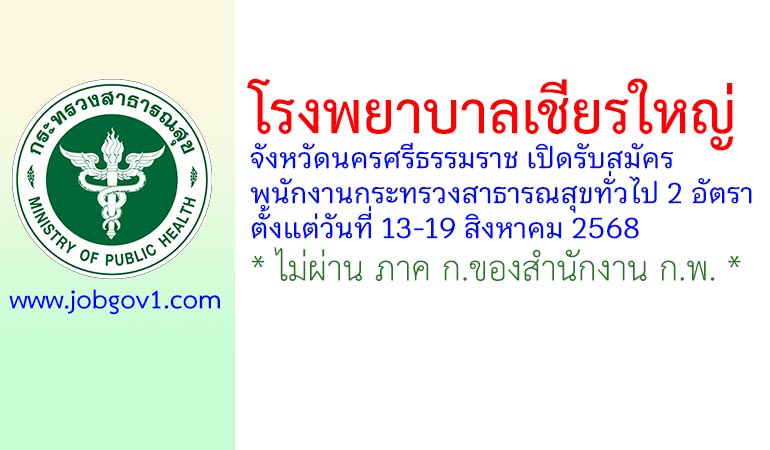 โรงพยาบาลเชียรใหญ่ รับสมัครพนักงานกระทรวงสาธารณสุขทั่วไป 3 อัตรา ตั้งแต่วันที่ 13-19 สิงหาคม 2568