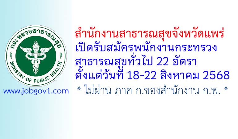 สำนักงานสาธารณสุขจังหวัดแพร่ รับสมัครพนักงานกระทรวงสาธารณสุขทั่วไป 22 อัตรา ตั้งแต่วันที่ 18-22 สิงหาคม 2568