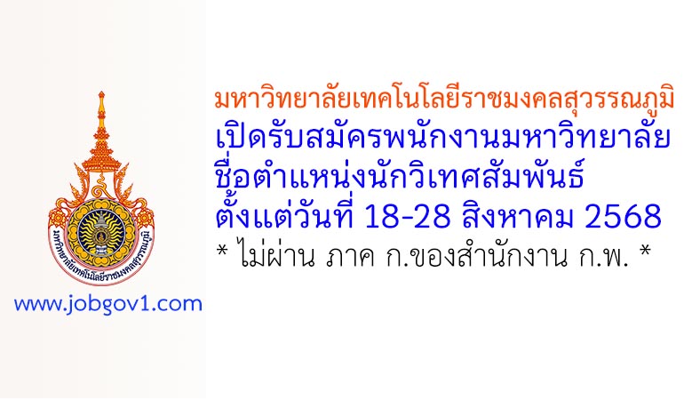 มหาวิทยาลัยเทคโนโลยีราชมงคลสุวรรณภูมิ รับสมัครพนักงานมหาวิทยาลัย ตำแหน่งนักวิเทศสัมพันธ์ ตั้งแต่วันที่ 18-28 สิงหาคม 2568